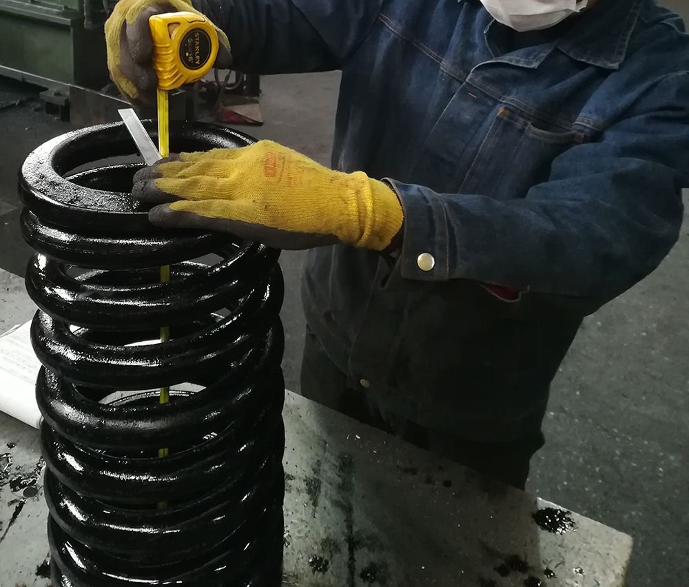 After the tempering process, the spring dimensional control is carried out. This must comply with the wire diameter, free length, total coils, outside and inside diameter, specified in the process sheet.