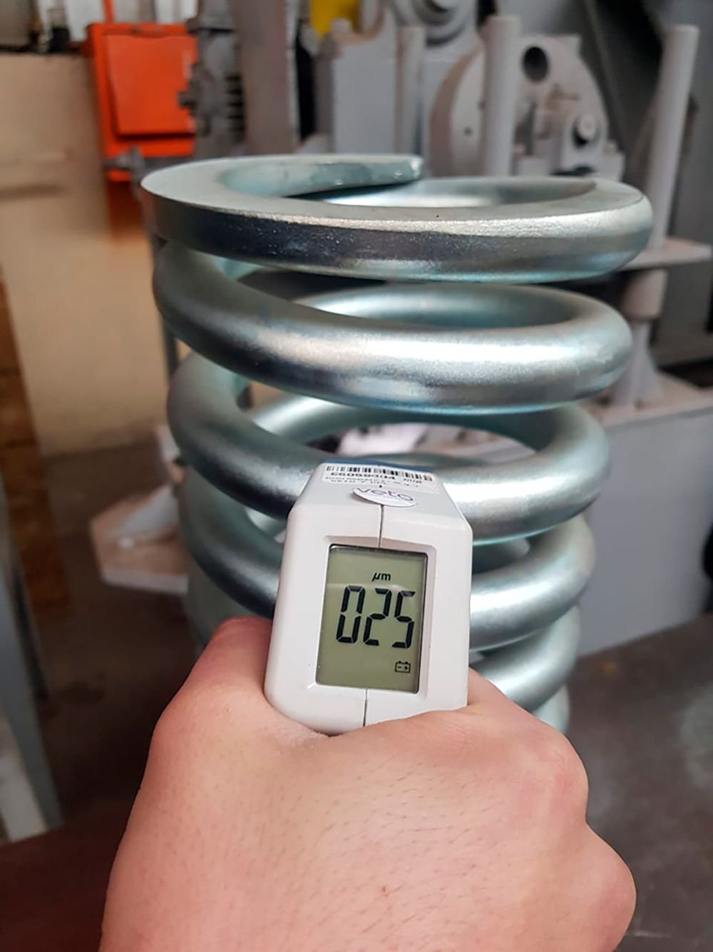 As specified by the customer, the spring is coated with electrostatic paint or electrolytic zinc plating, which reduces oxidation, controlling the thickness with a coating gauge to ensure the corresponding microns.
