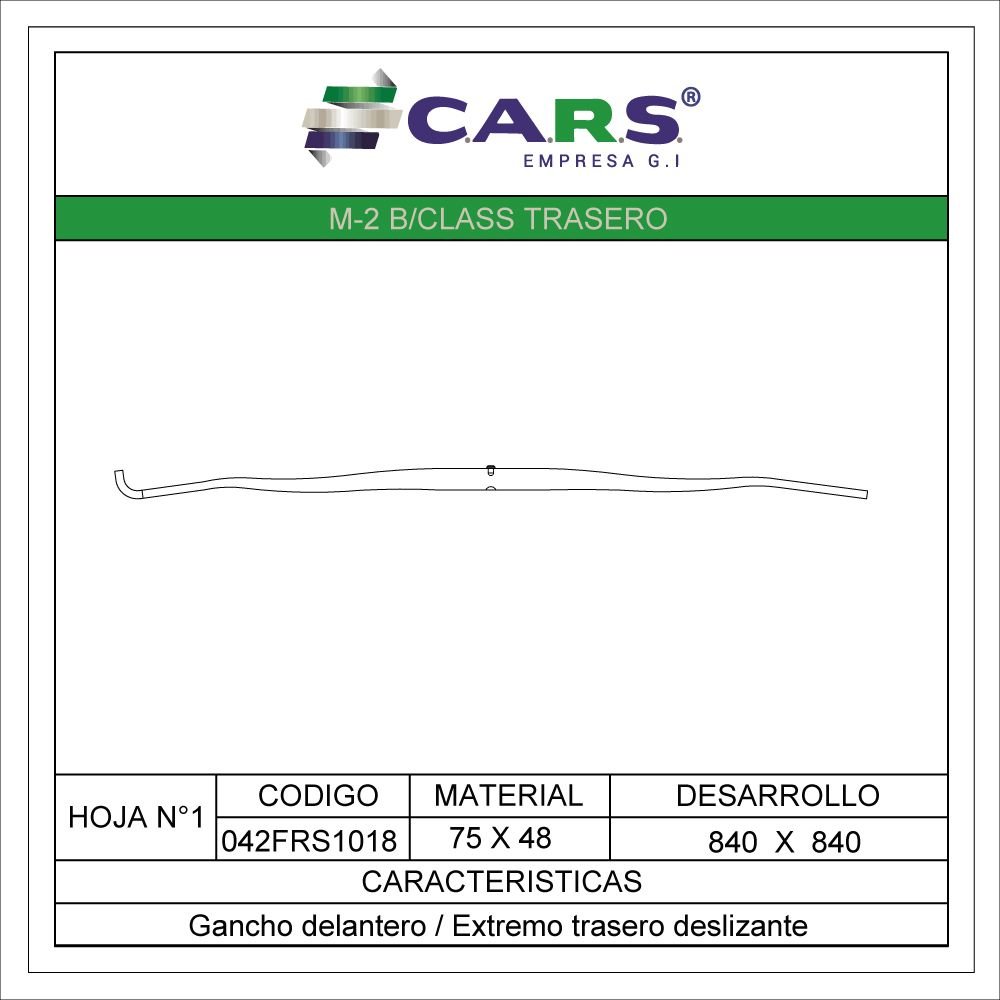 MATERIAL: 75 X 48 DESARROLLO: 840 X 840 CARACTERISTICAS: PARTE DEL. TERMINA GANCHO HACIA ABAJO