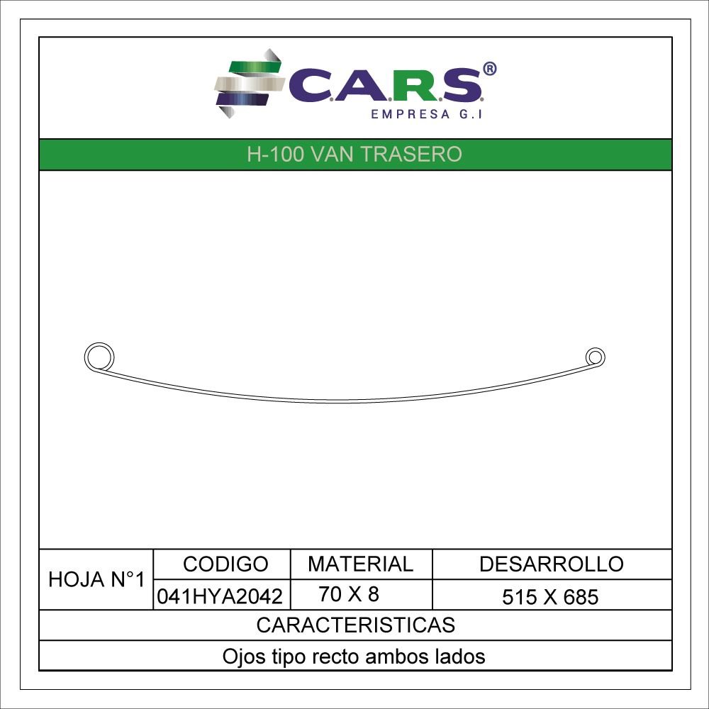 MATERIAL: 70 X 8 DESARROLLO: 515 X 685 CARACTERISTICAS: OJOS RECTOS 54-29